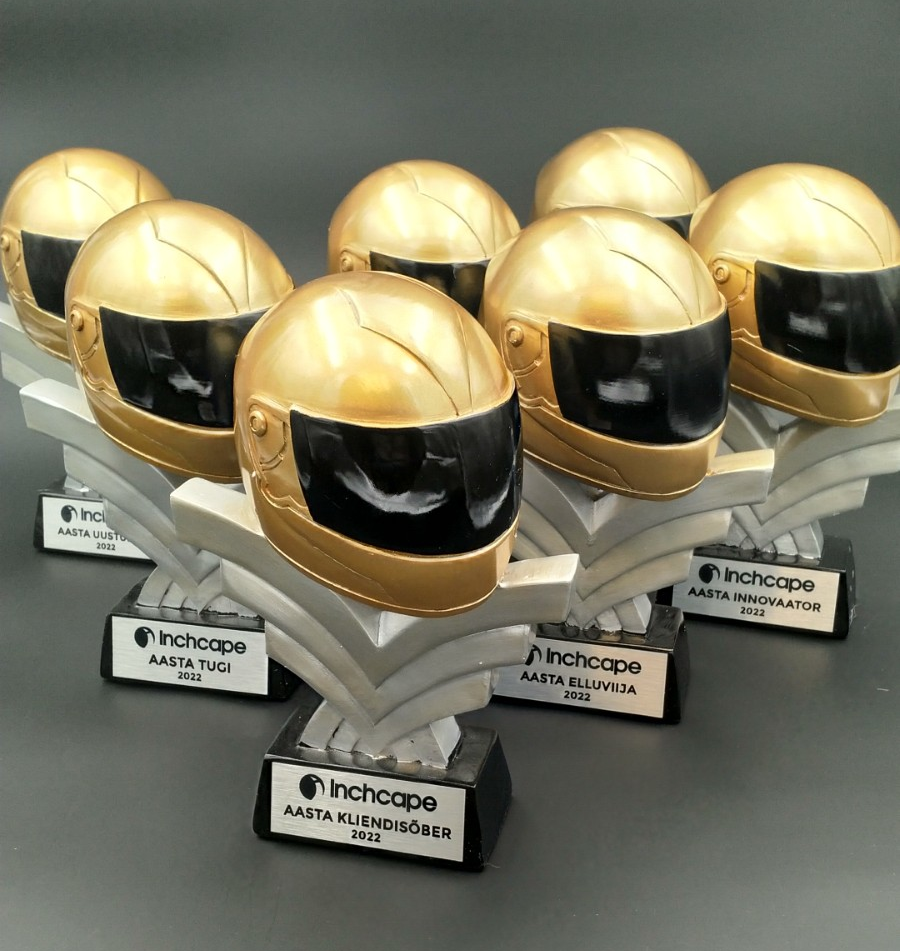 Resiinist kiiver lennukal alusel, värvitud kuldseks/hõbedaseks/mustaks.
