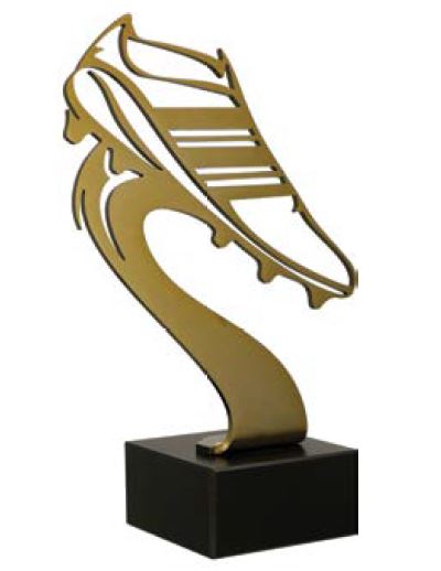 5mm metallilehest välja lõigatud, kuldseks värvitud jalgpalliputsa.