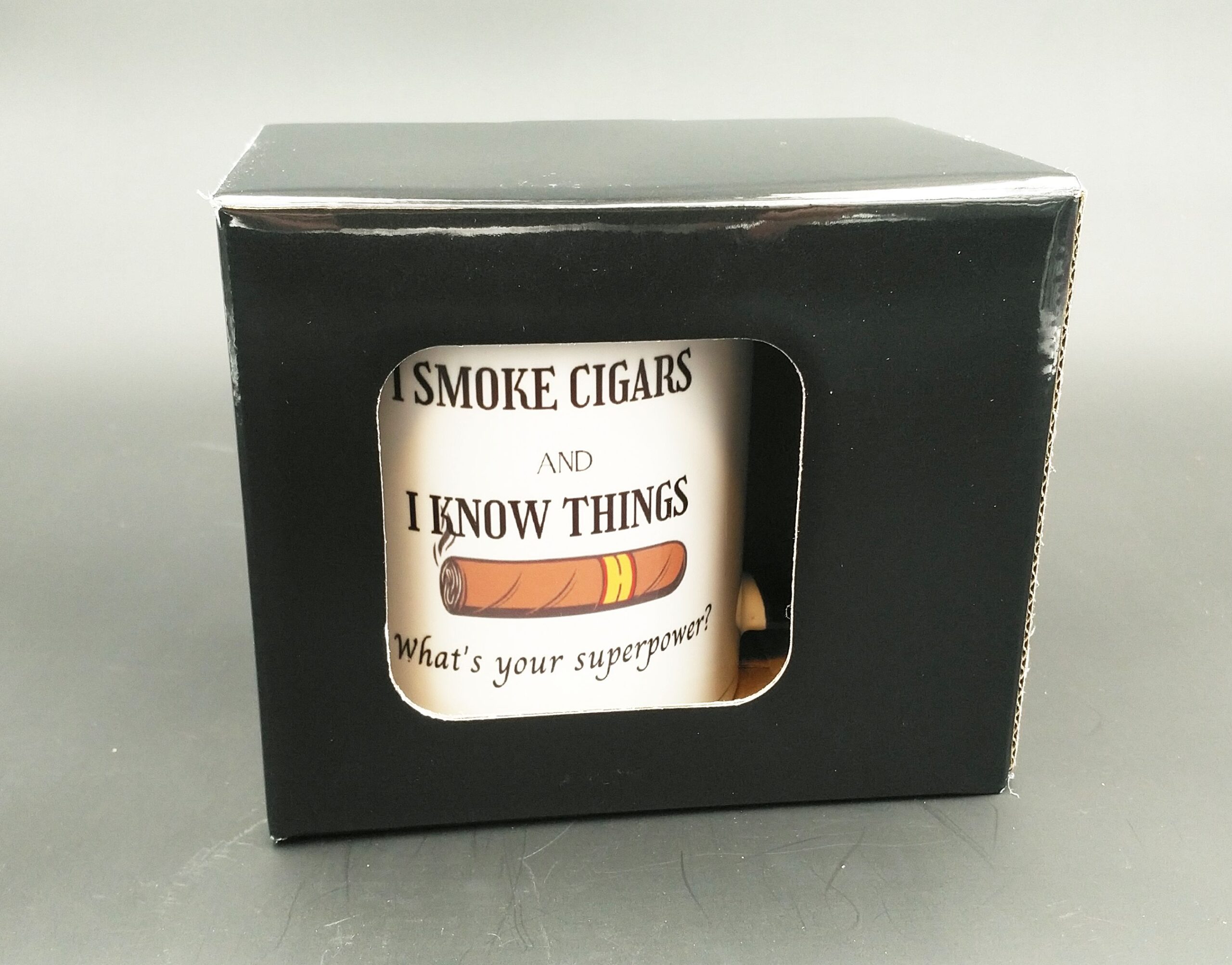 Pakume kruusile läikiva pinnaga kartongist karpi.