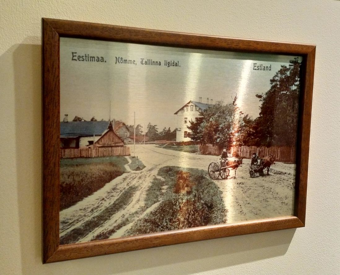 Foto on trükitud harjatud või poleeritud hõbedasele metall-lehele.