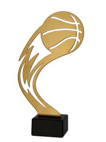 2mm metallilehest välja lõigatud, kuldseks värvitud korvpalliauhind.