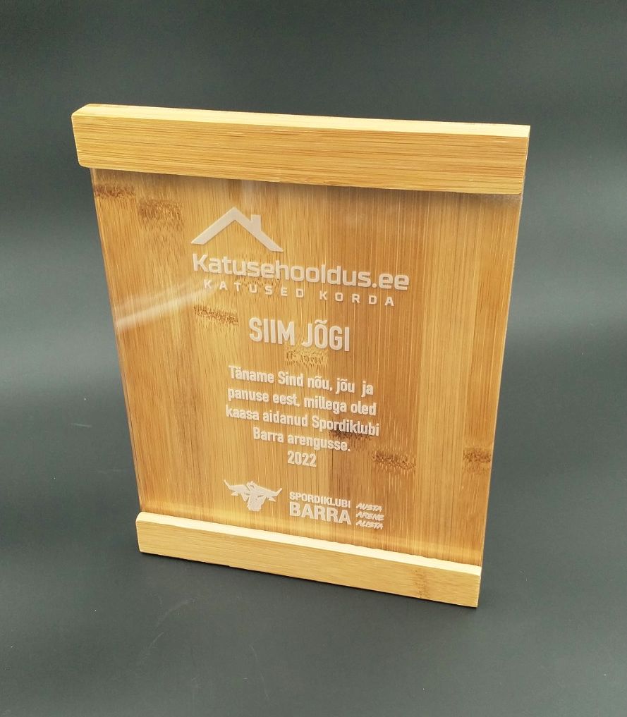 180x230mm bambustahvel, millele kruvitud akrüülplaat.